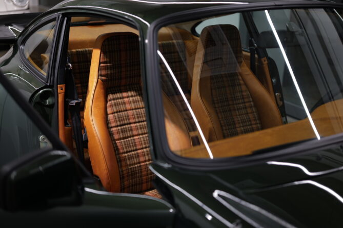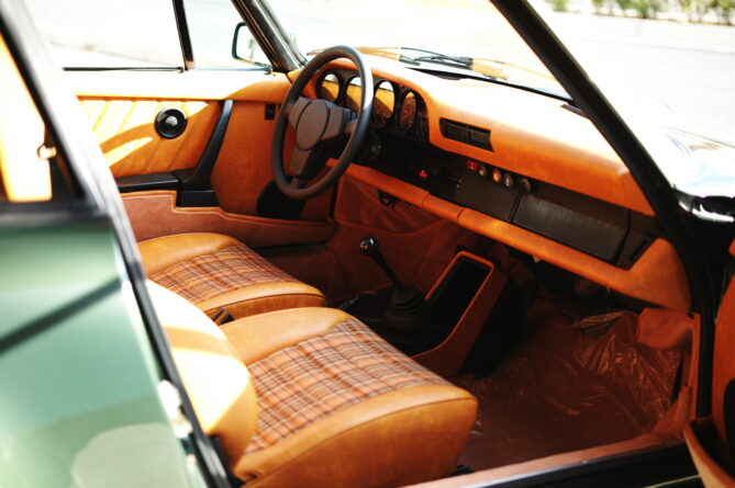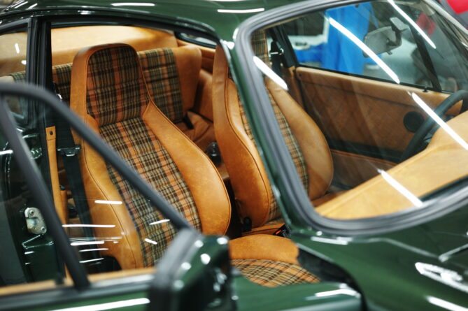 ・レザーシート(CORK)/カスタムファブリックシート(Porsche Karo Madras,brown/beige/orange)